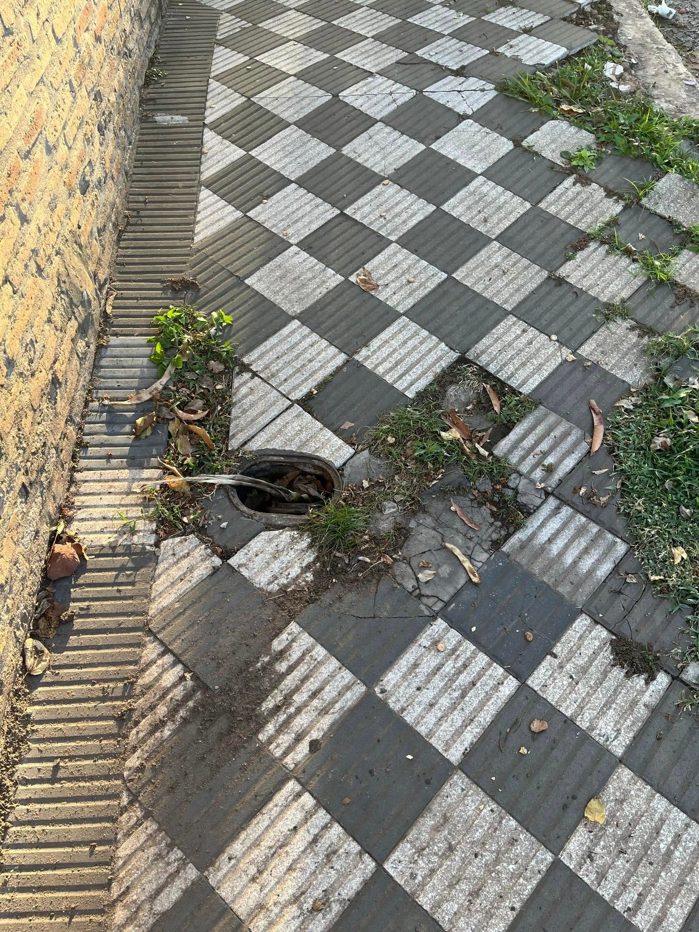 路面破碎是常態,而樹木根系常撐破地磚、隆起地面。埋在地裡的水錶,其上方的孔蓋常常鬧失蹤,坑洞則會被落葉和垃圾填滿,處處是陷阱。